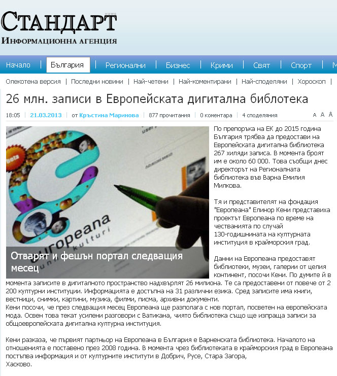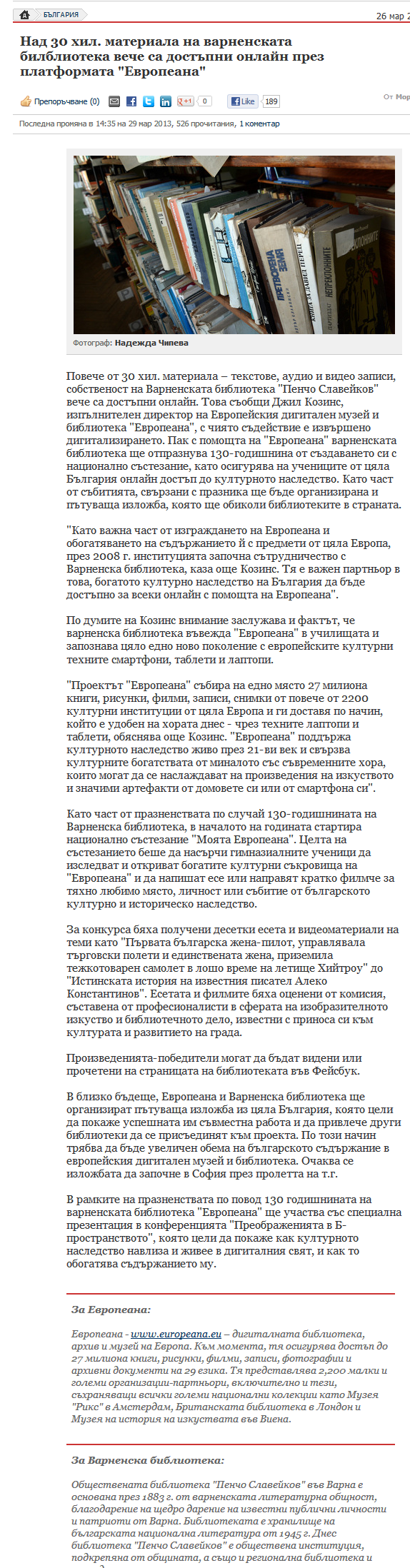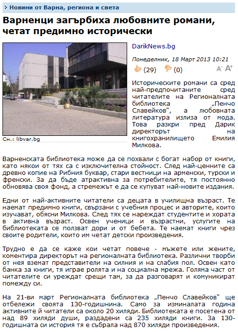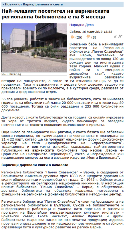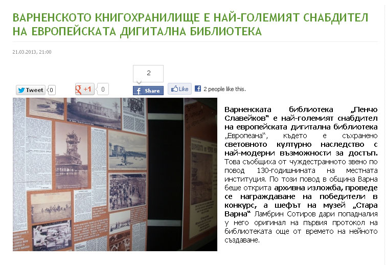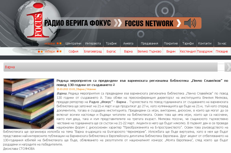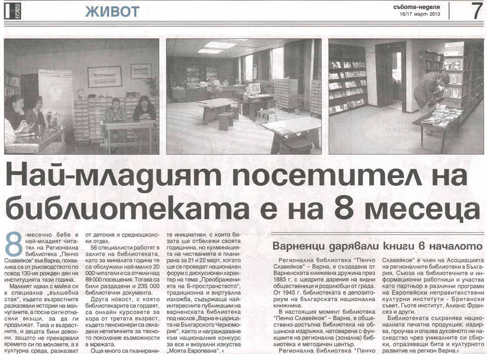 Отзиви в медиите по повод 130 годишнината на Регионална библиотека "Пенчо Славейков"