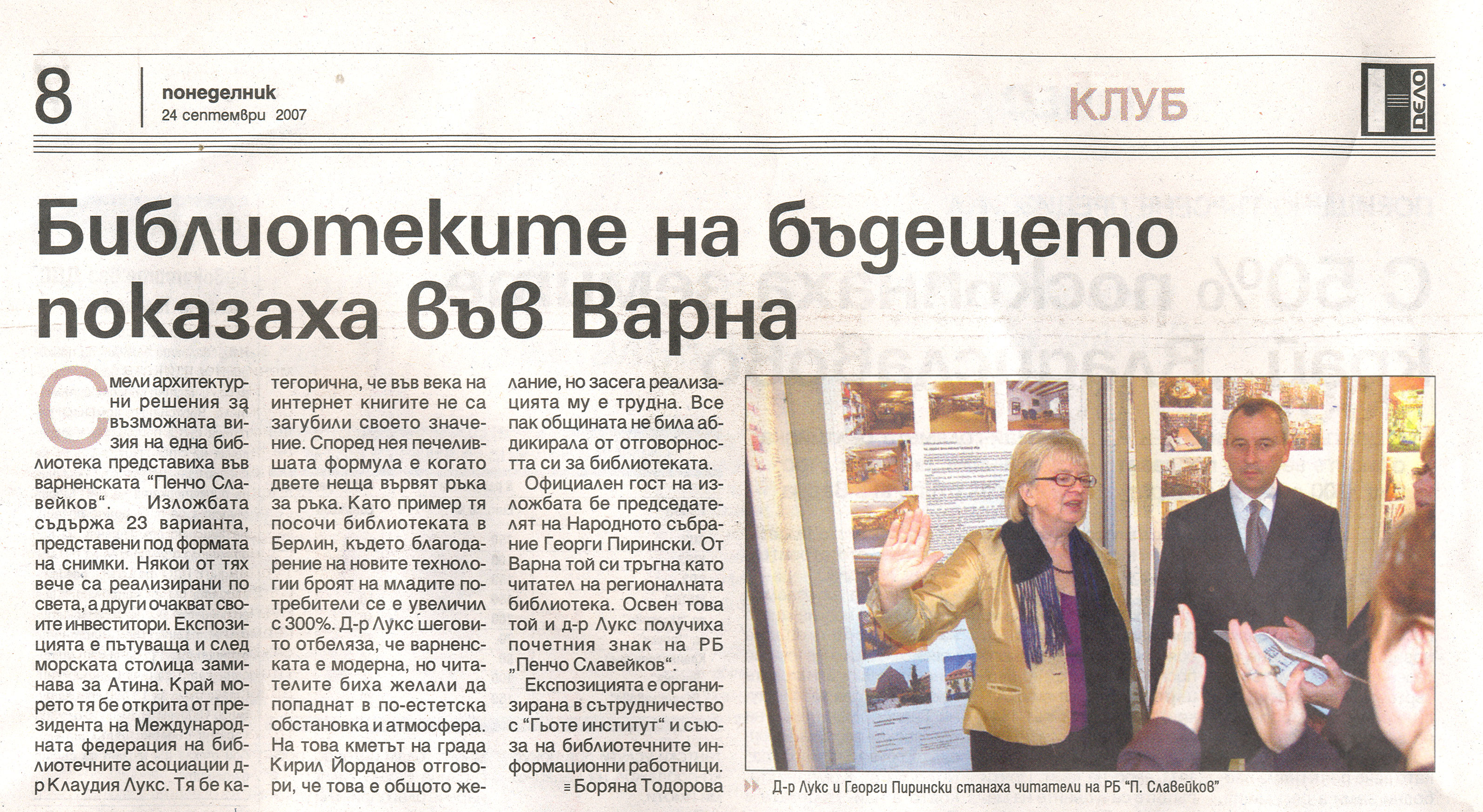Да има разговор за библиотеките и те да бъдат в дневния ред, това е посланието на пътуващата изложба, която може да бъде видяна от 22 септември до 5 октомври 2007 г. във фоайето на библиотеката.