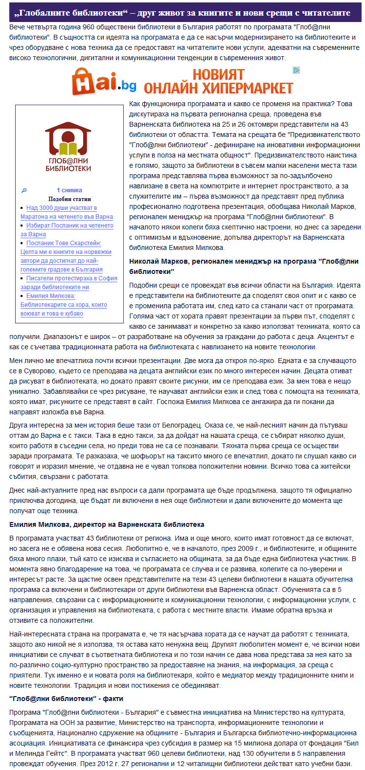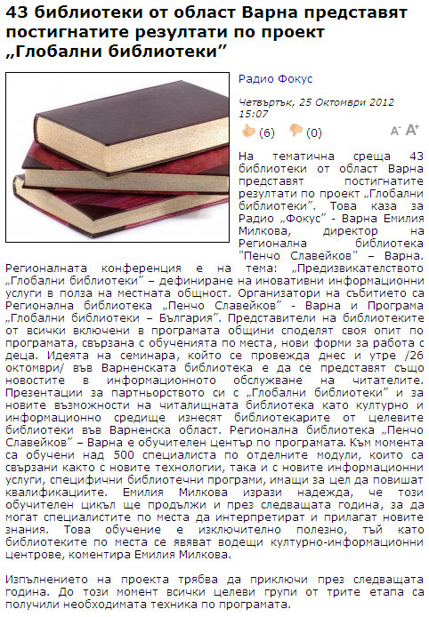 Интервю с Емилия Милкова - директор на Регионална библиотека "Пенчо Славейков" и Николай Марков - регионален мениджър на Програма "Глобални библиотеки – България"