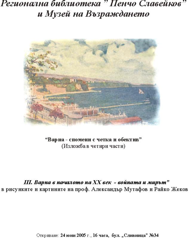 Откриване на четвъртата част на изложбата "Варна - спомени с четка и обектив"; ІV част - "Памет за старинна Варна" /в акварелите на Христо Каварналиев, картичките на фотографа Коста Терзистоев и издателя Атанас Велчев/