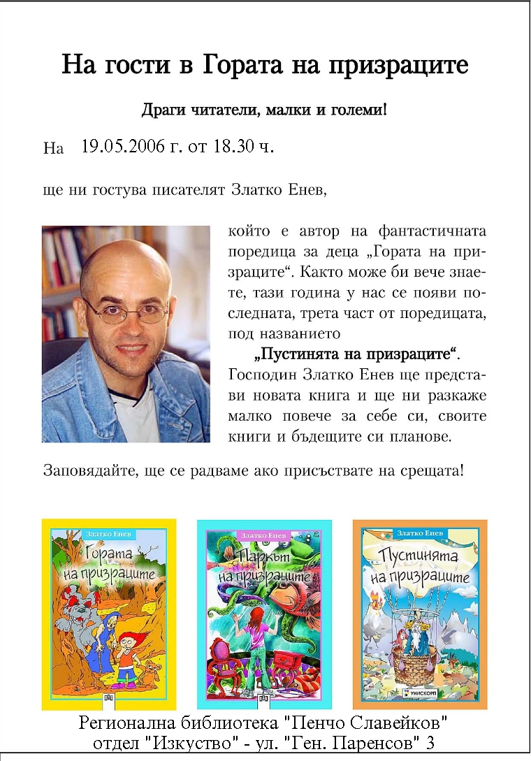 "Среща с автора": Златко Енев представя третата си книга от поредицата