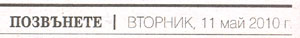 Варна), XI, N 104, 12 май 2010, с. 12.
