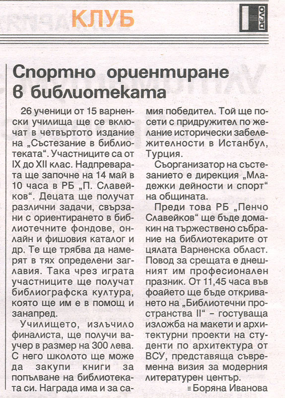 11 май - Професионален празник на библиотечните специалисти