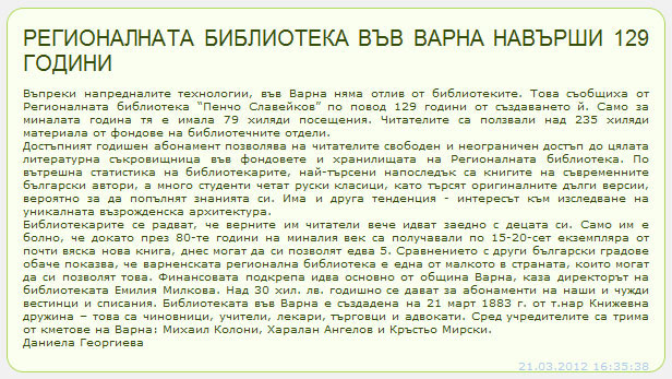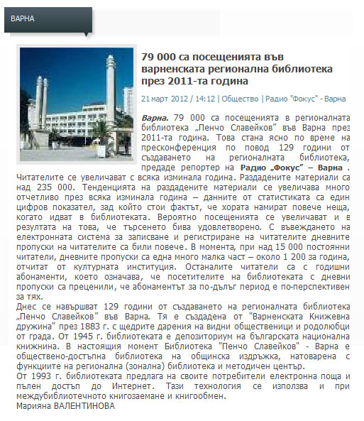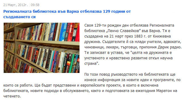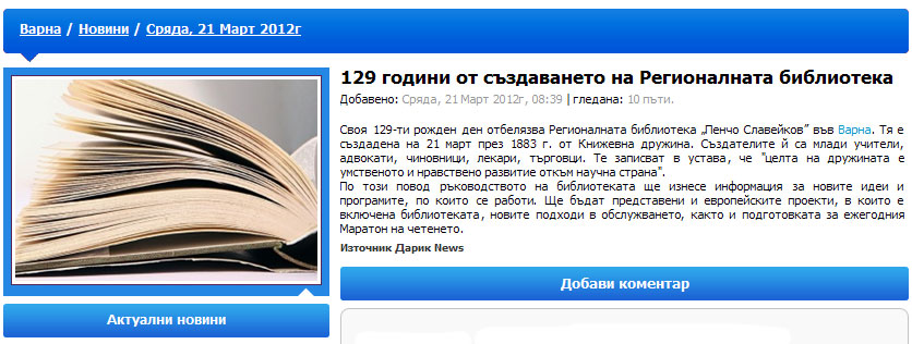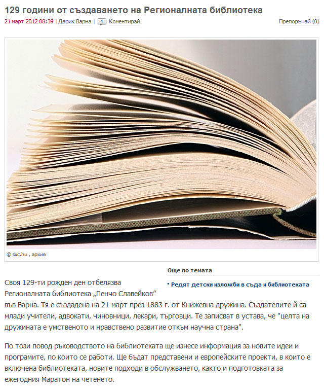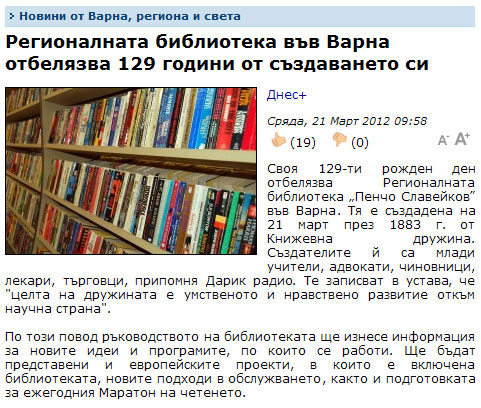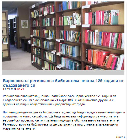 Варненската библиотека на 129 години