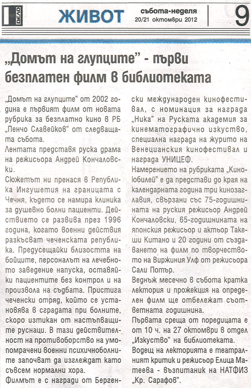 Рубрика "Киноюбилей" - "Домът на глупците"