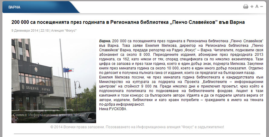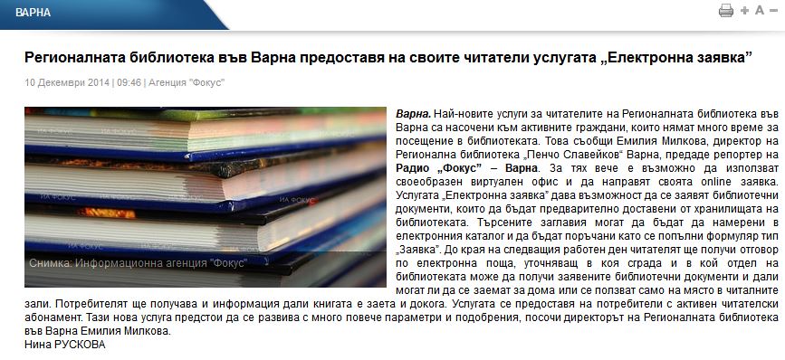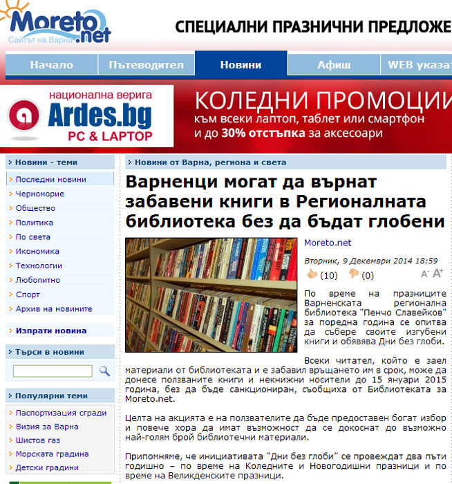На 9 декември в Немска читалня на Регионална библиотека "Пенчо Славейков" се състоя пресконференция за представяне на празничните инициативи на библиотеката в навечерието на Коледа и Нова година: