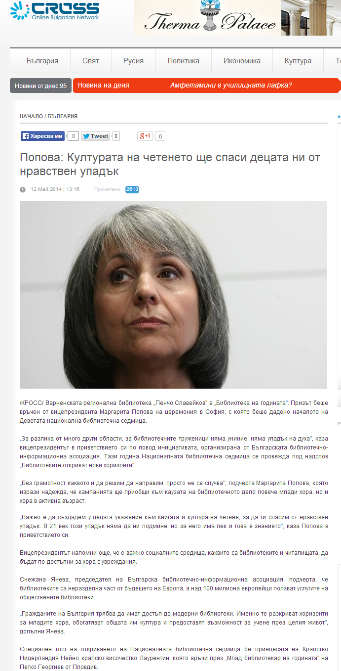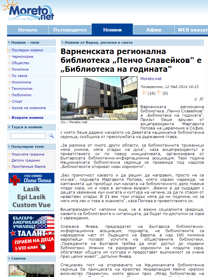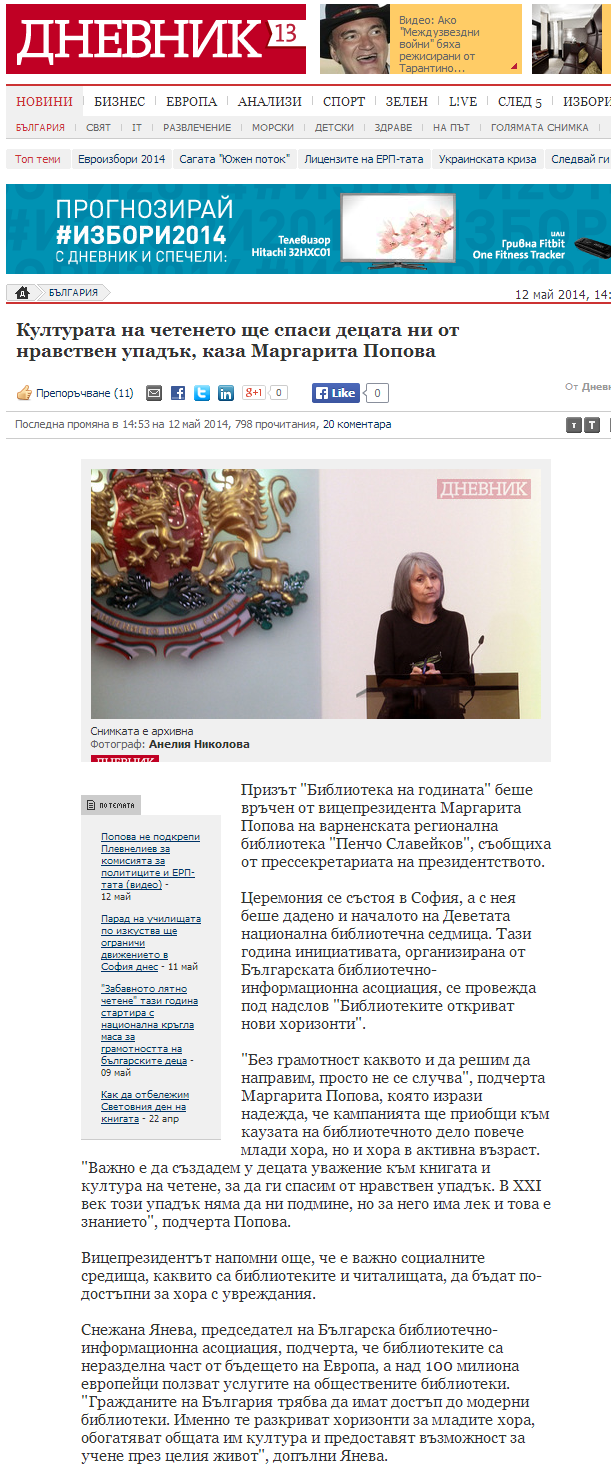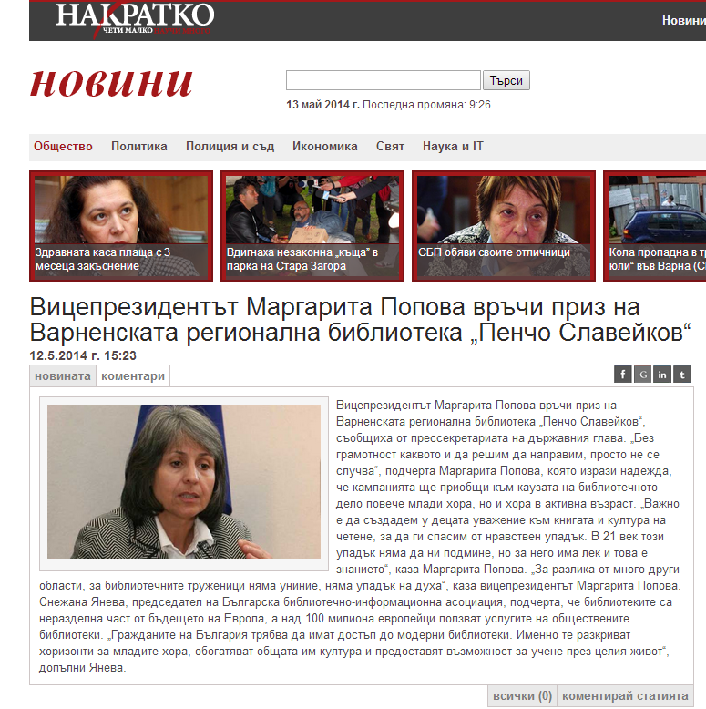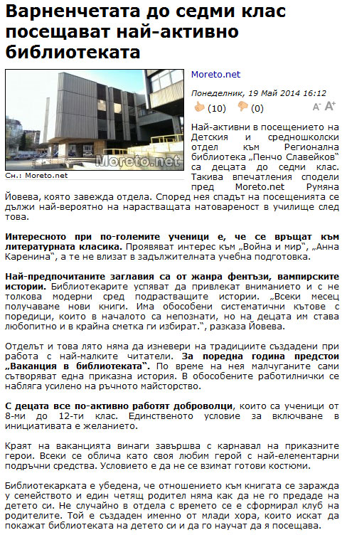 Регионална библиотека "Пенчо Славейков" бе удостоена с Годишната библиотечна награда на Българската библиотечно-информационна асоциация в категорията "Библиотека на годината 2013". Наградата бе връчена официално от вицепрезидента на Република България г-жа Маргарита Попова на тържественото откриване на Деветата национална библиотечна седмица. Специален гост на събитието беше принцесата на Нидерландия Лаурентин - авторка на детски книжки и лично ангажирана с инициативите за стимулиране на четенето.