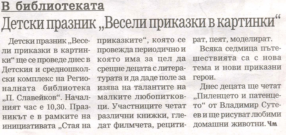 Детски празник "Весели приказки в картинки" в библиотеката. // Черно