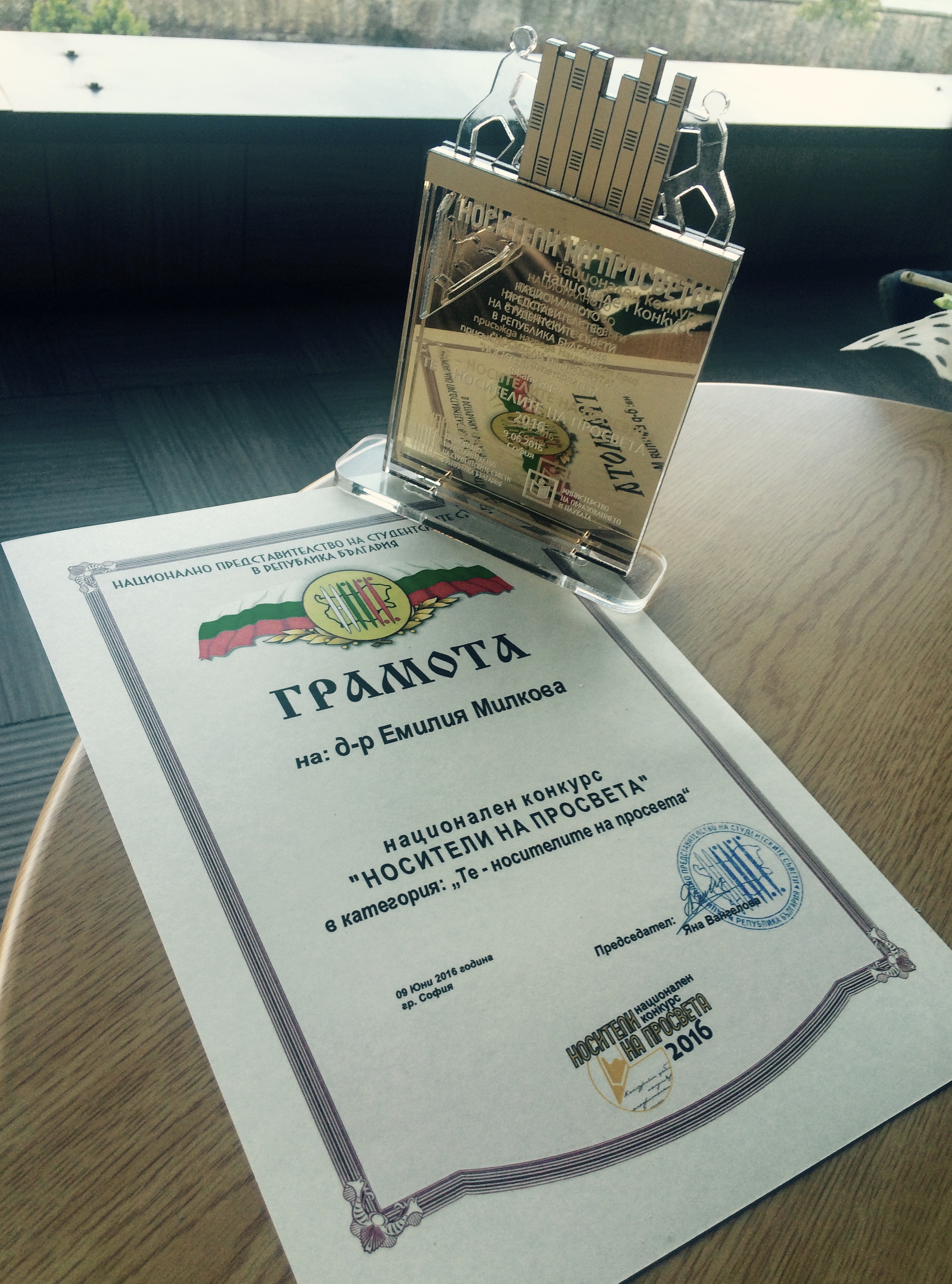 На 9 юни, в Литературен клуб „Перото“ на НДК бяха обявени победителите в националния конкурс „Носител на просветата 2016“.