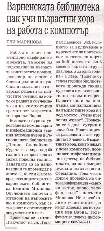 Проектът за нова библиотека ще е готов до лятото. // Нар. дело, LXXII,N45, 7-13 ноемв. 2016, с.6. |