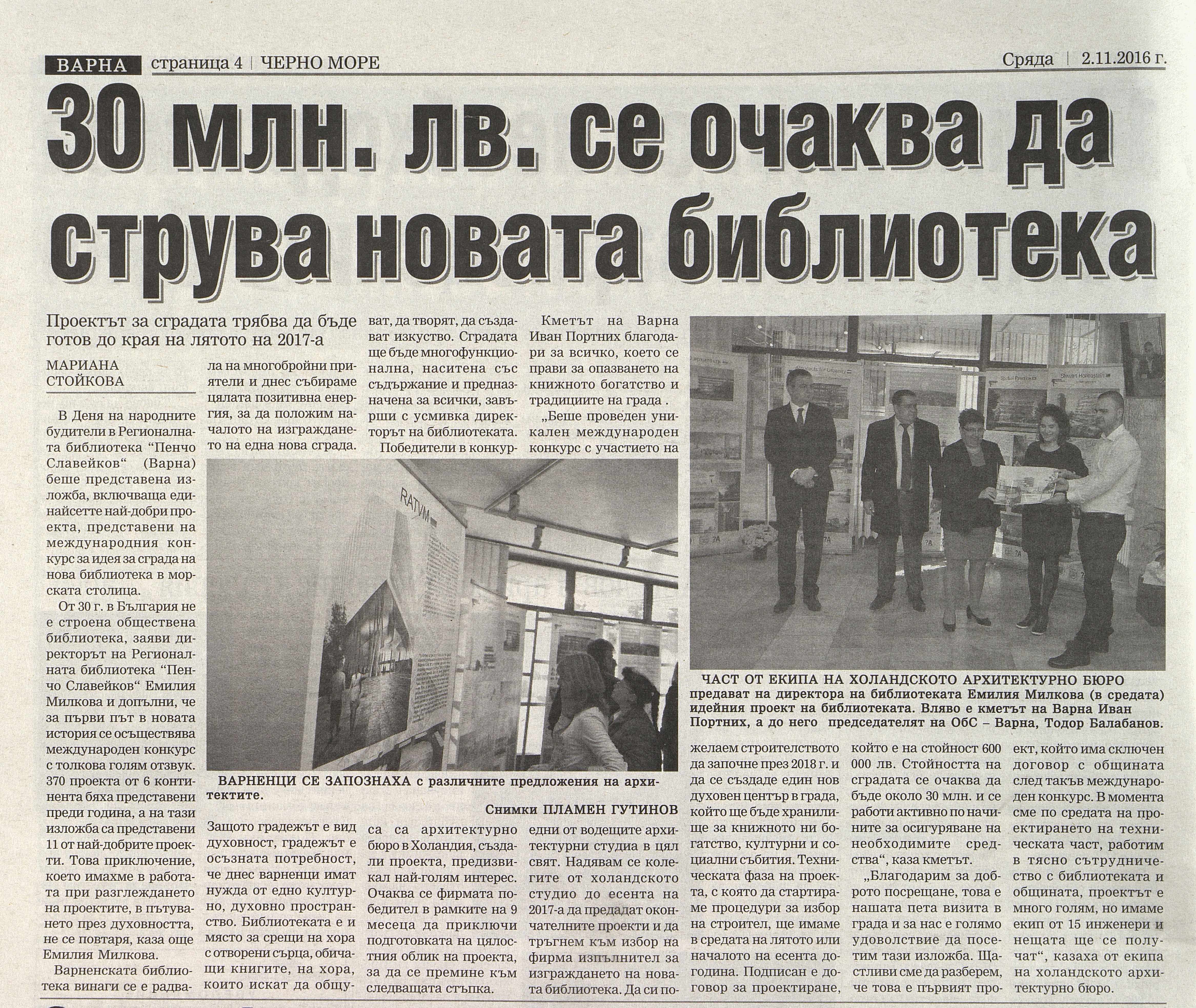 30 млн. лв. се очаква да струва новата библиотека на Варна. // chernomore.bg, 01 ноем. 2016. |