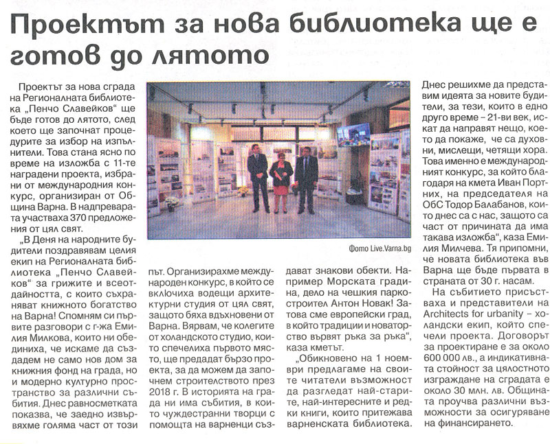 Проектират новата библиотека на Варна до лятото. // trud.bg, 01 ноем. 2016. |
