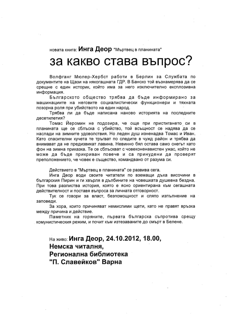 българска публика новата си, четвърта поред книга "Мъртвец в планината"