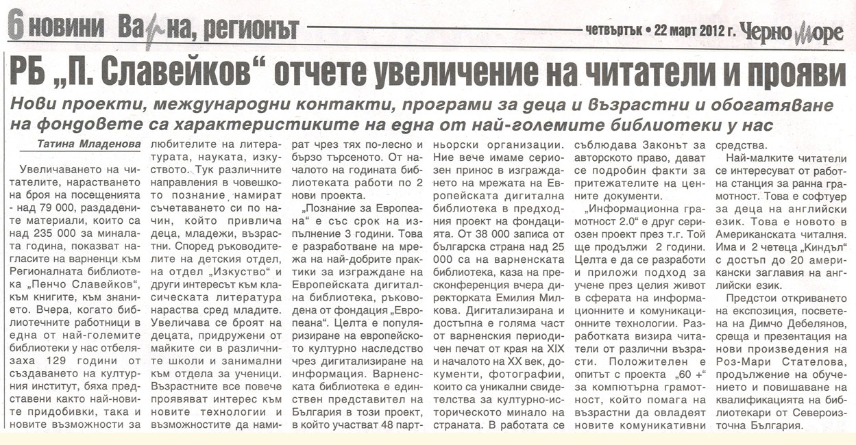 7-8 Юни 2012 г. - XXII национална конференция на ББИА "Библиотеките днес - иновативни политики и практики", гр. София