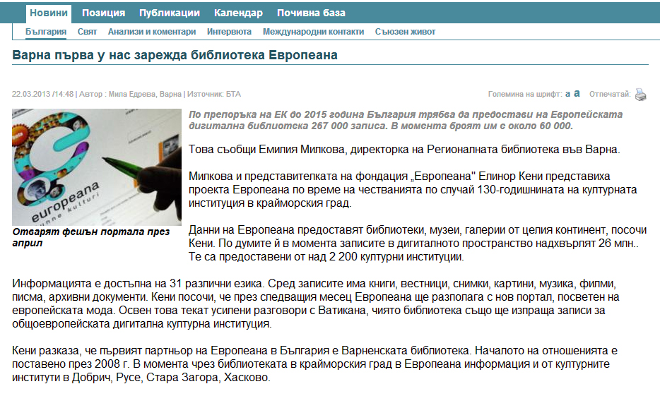 19 Март 2012 г. - Среща - семинар по Европеана "Проекти с българско участие за цифровизация и разпространение на научното и културно наследство чрез публикуване в Европеана", гр. Велико Търново
