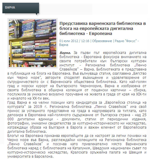 Варненската библиотека във фокуса на Европеана