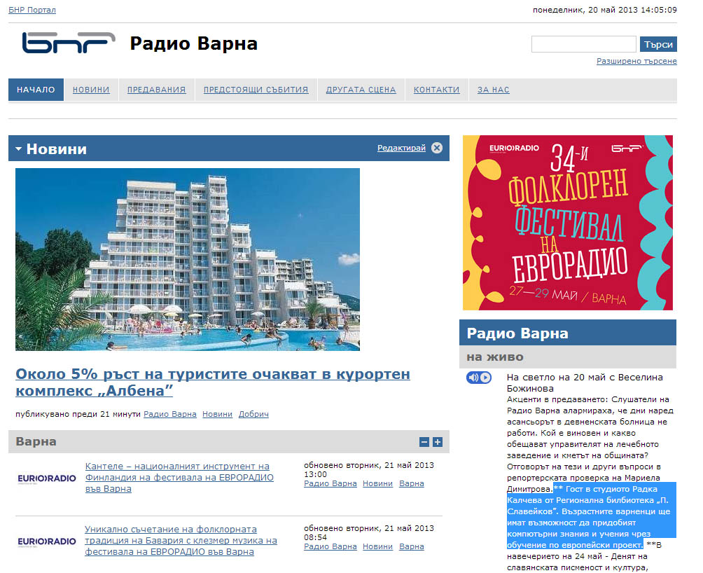 Интервю за проект “Информационна грамотност 2.0” в предаването "На светло". // БНР Варна, 20 май 2013.