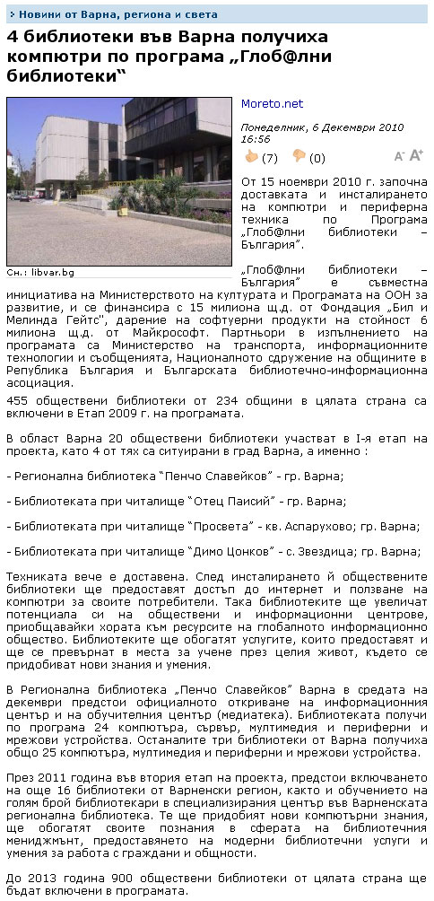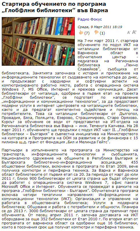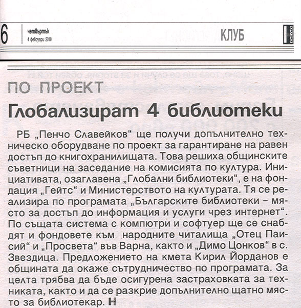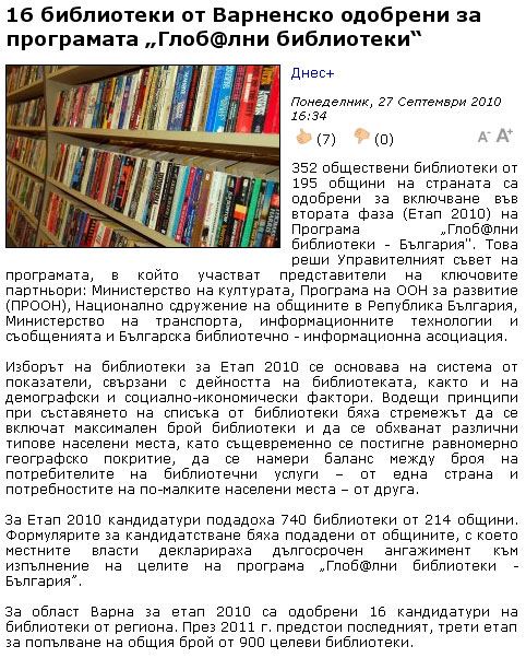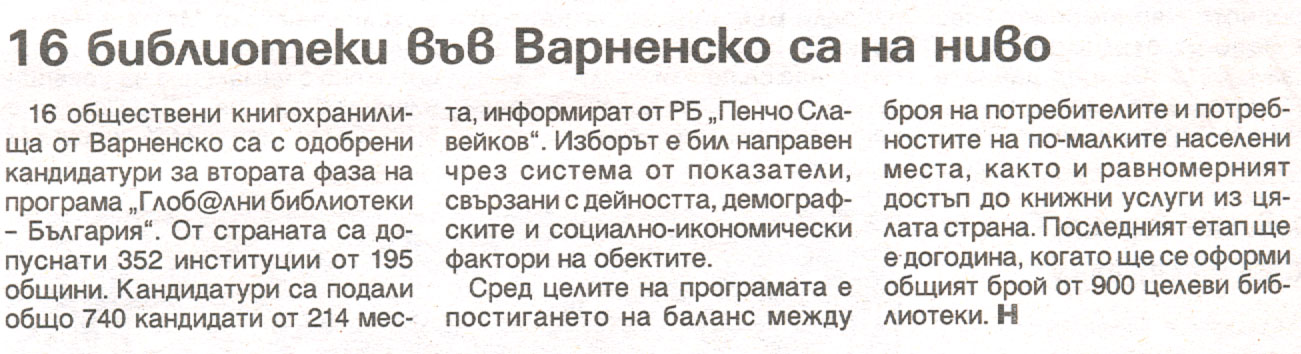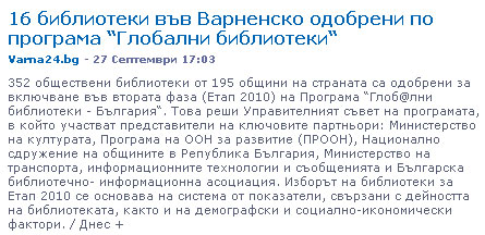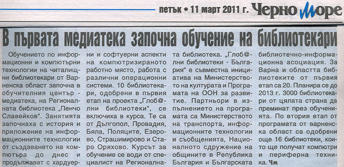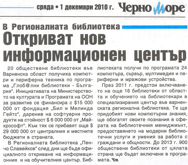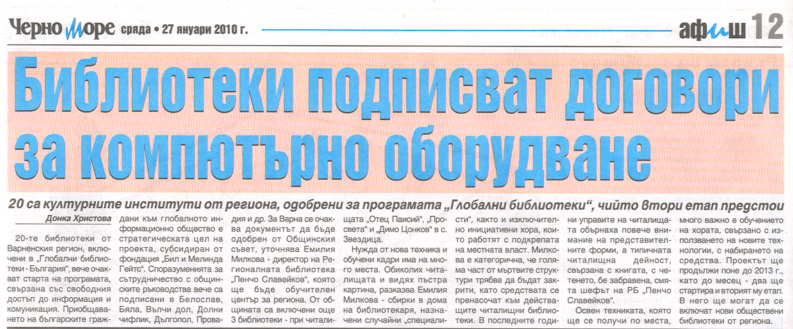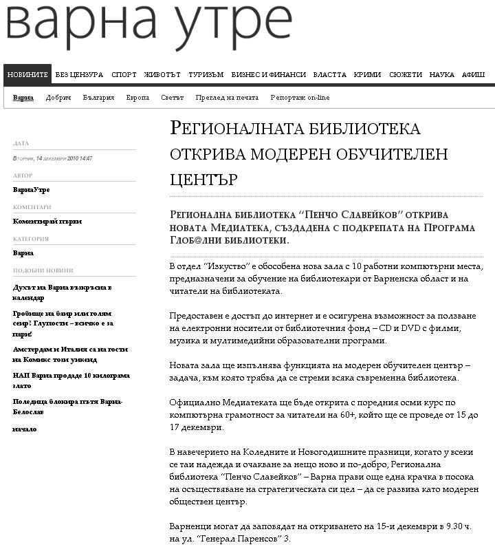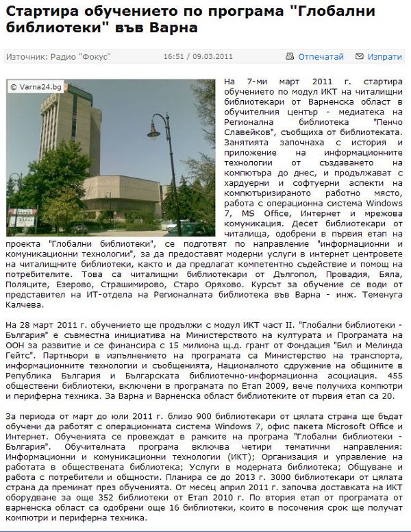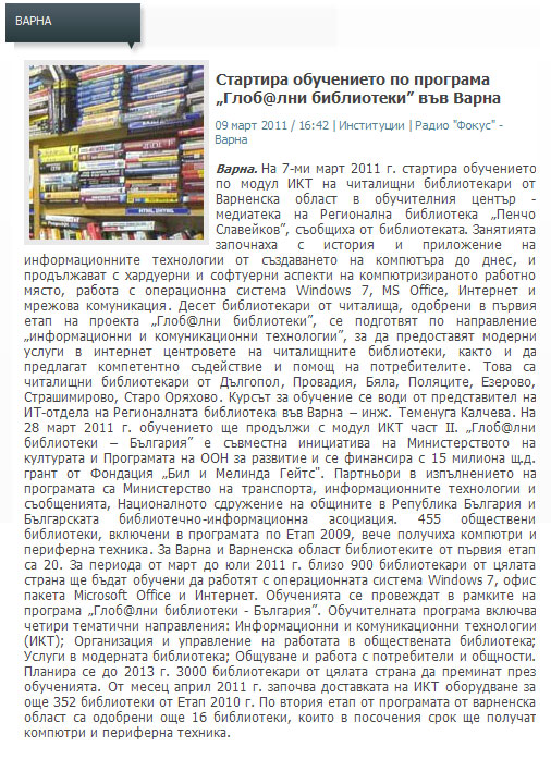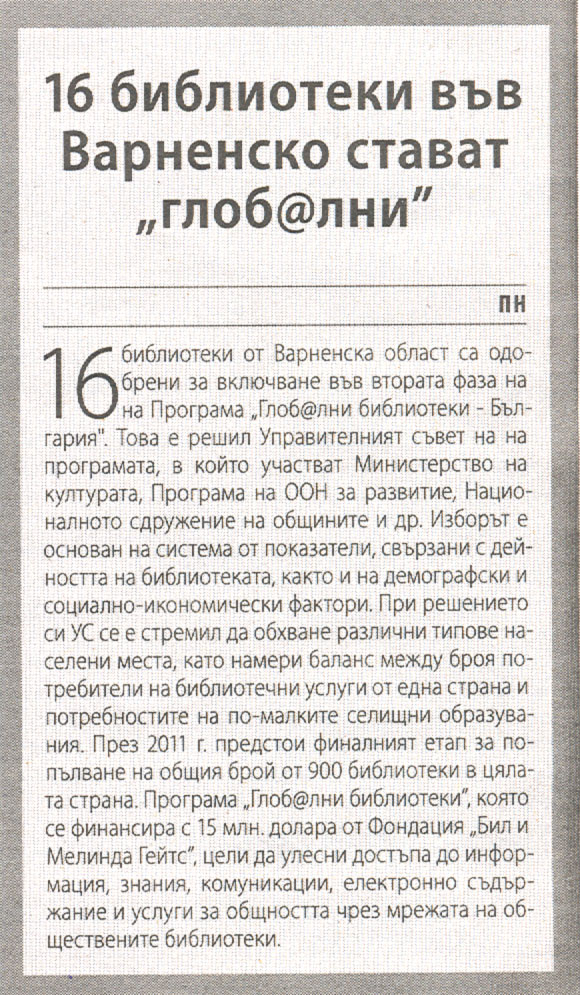 Програма "Глоб@лни библиотеки - България" във Варненска област > Отзиви в медиите (в хронологичен ред)