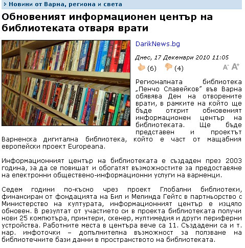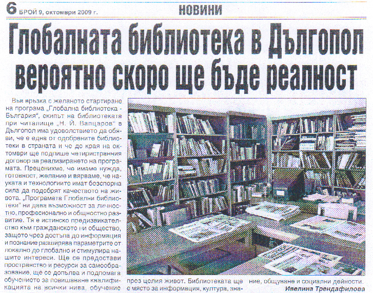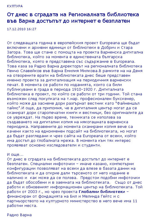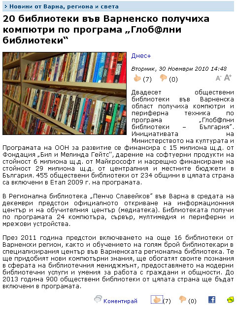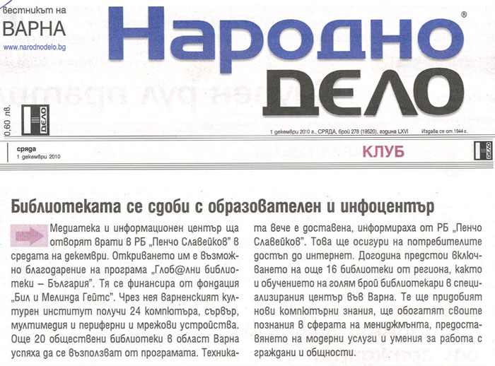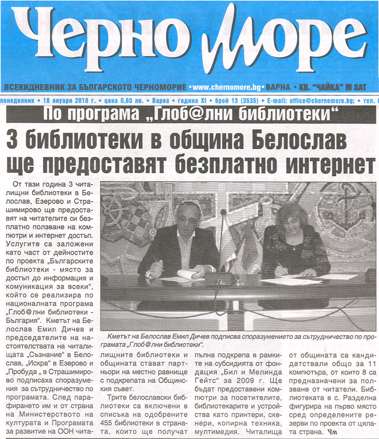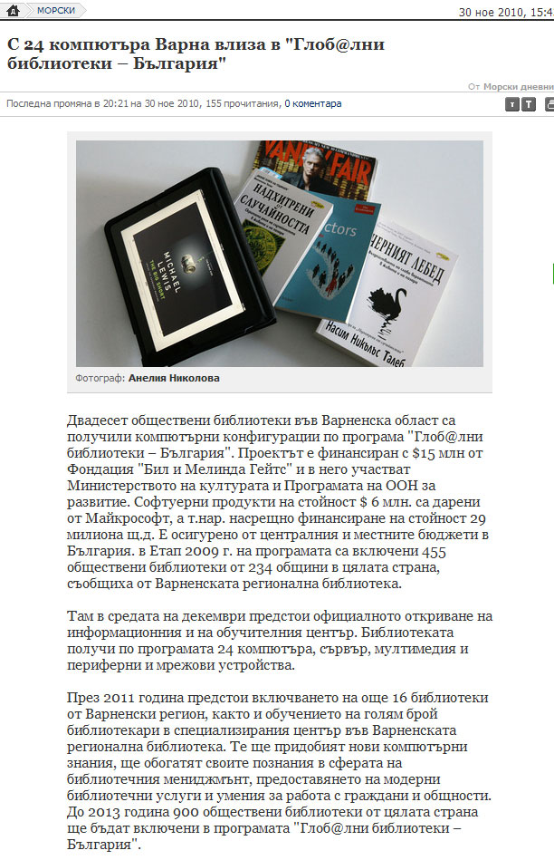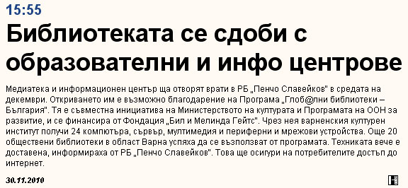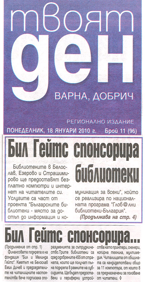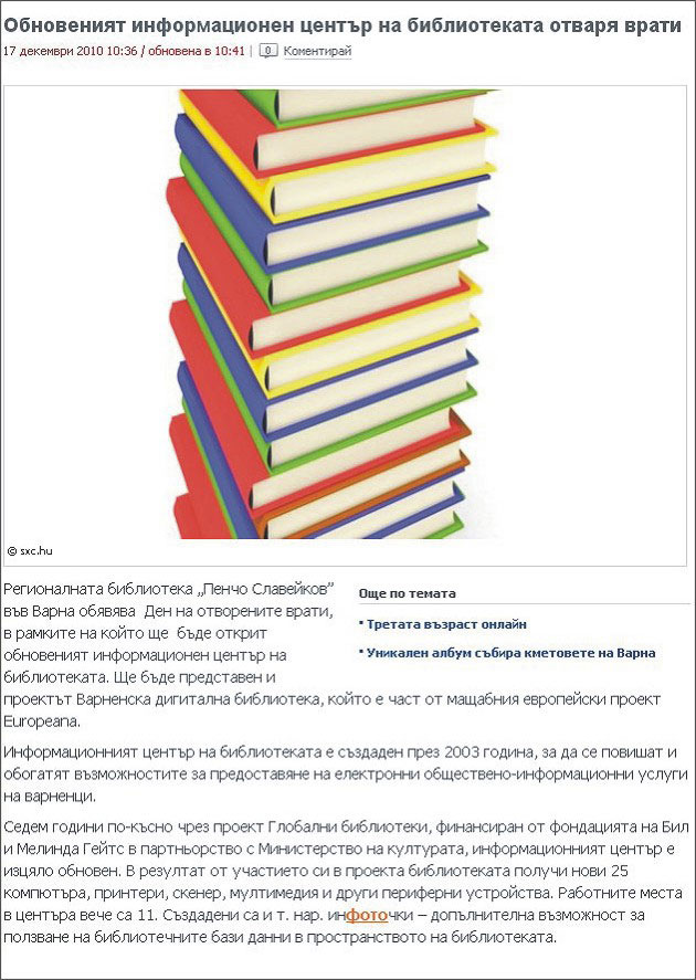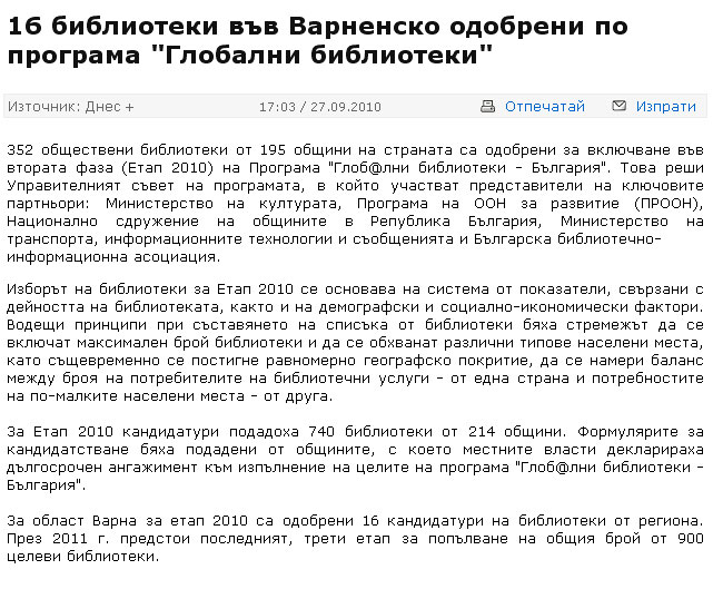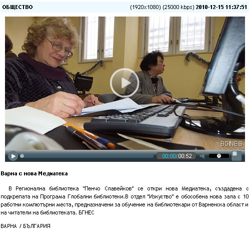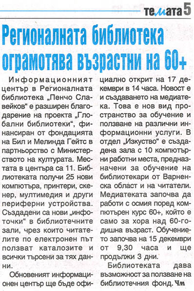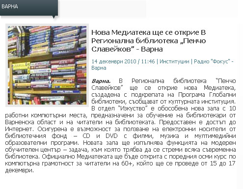 Програма "Глоб@лни библиотеки - България" във Варненска област > Отзиви в медиите (в хронологичен ред)