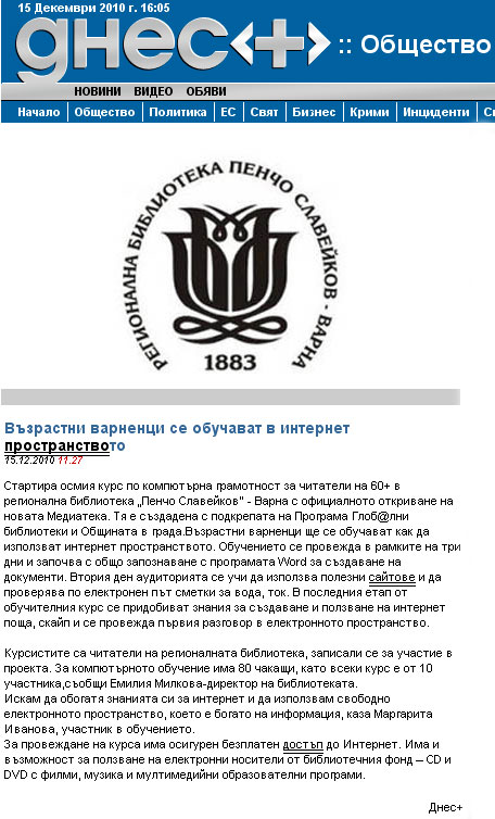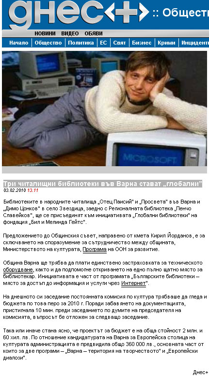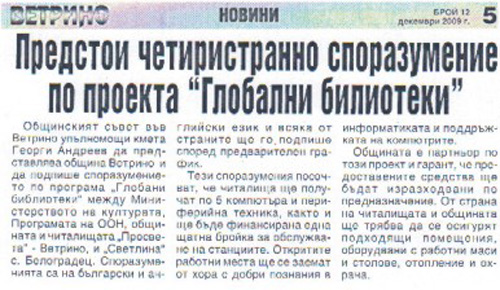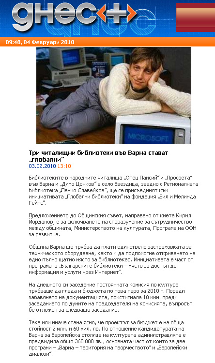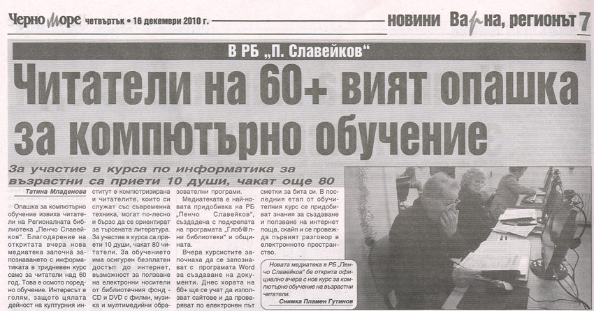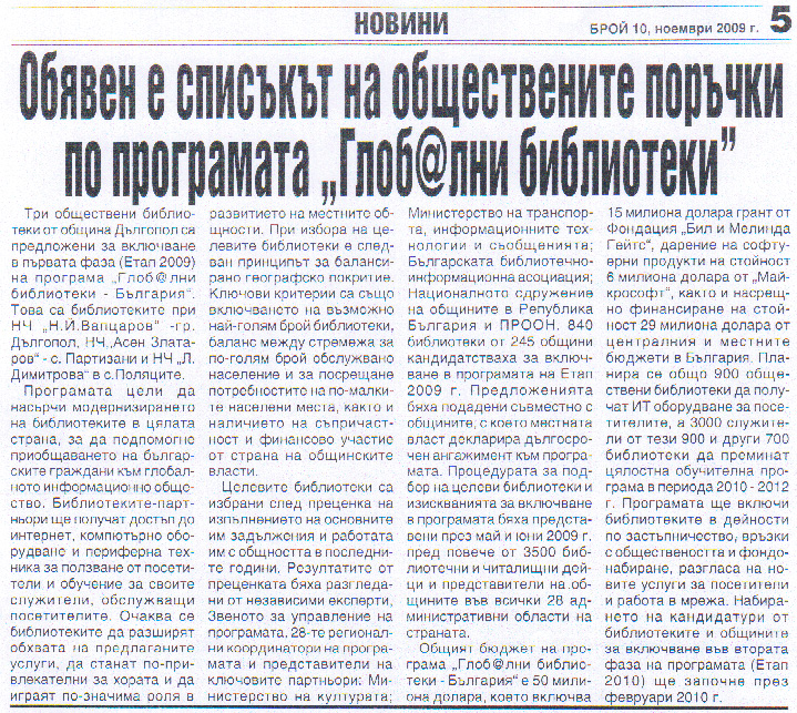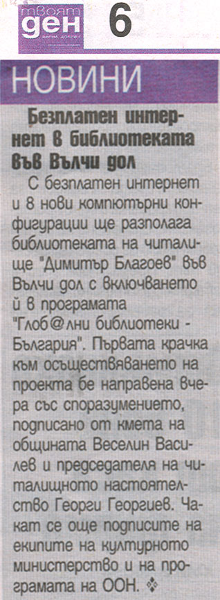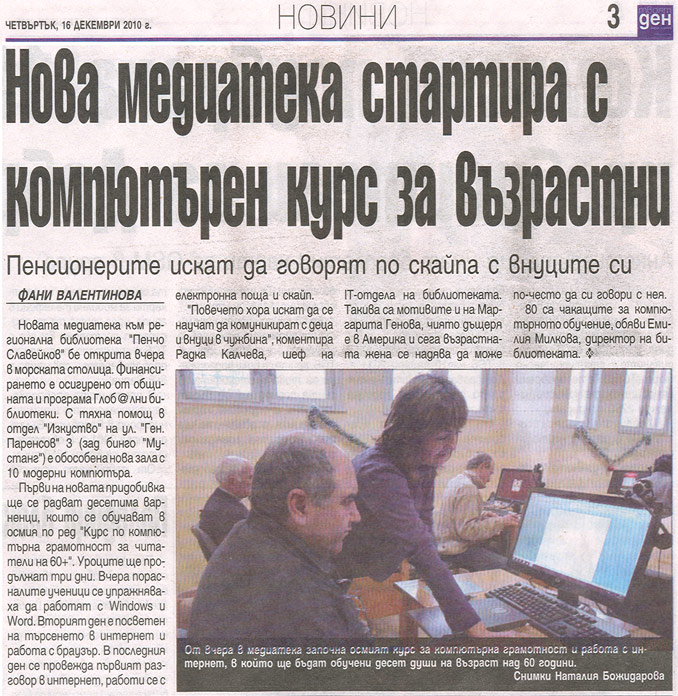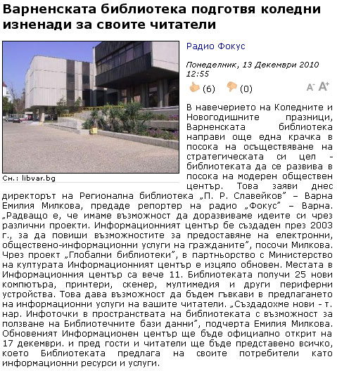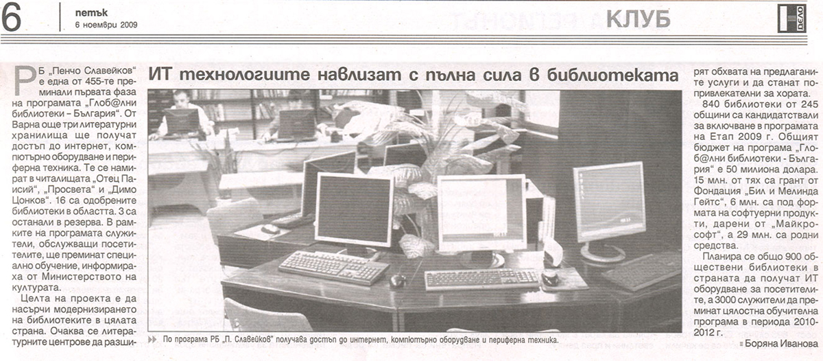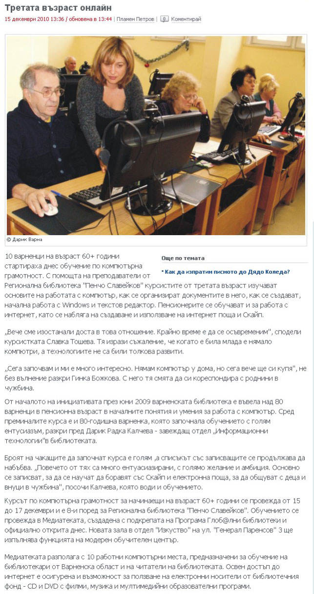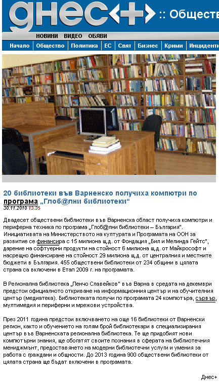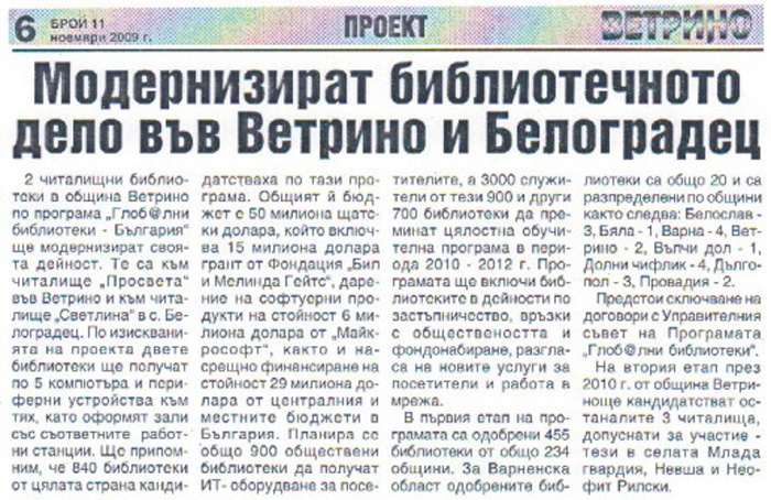 Програма "Глоб@лни библиотеки - България" във Варненска област > Отзиви в медиите (в хронологичен ред)