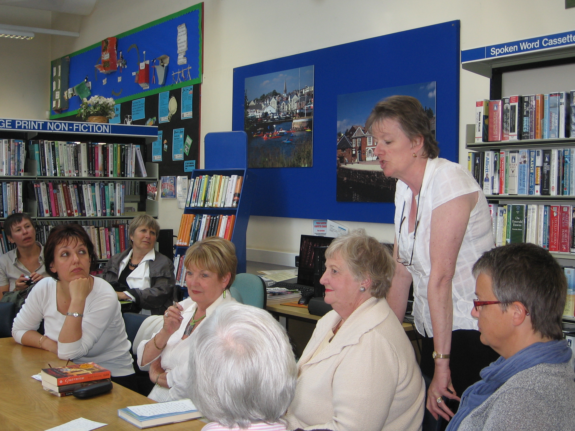 Джил Хюз, директорката на библиотеката, ни запознава с дамите от Читателския клуб