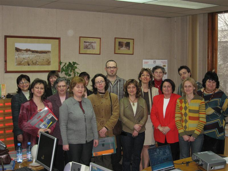 Проект AITMES Регионален тренинг семинар 26-28 март 2007 г. Тренинг семинарът бе проведен на 26, 27 и 28 март 2007 г. В него се включиха десет души, работещи в различни културни институции – музеи, Държавен архив, училища и библиотеки. Осем лектори обучаваха участниците в различните етапи от работата по проекта. Подготовката на тренинг семинара включваше: 1. Персонални пакети за всеки участник, включващи работната програма, презентациите, брошура за дейностите на семинара, анкетна карта и други материали. 2. Пет персонални компютри с връзка към интернет и с необходимия софтуер за създаване на текстови файлове, видео файлове и изображения. Ден първи. Семинарът започна с регистрация на гостите и с кратка церемония по посрещането им. Кристиана Димчева представи проект AITMES – общ преглед, цели, основни дейности, работни пакети и проведения вече тренинг семинар. Живка Минева и Румяна Петрова (участници в първия регионален тренинг семинар) споделиха опита и впечатленията си. Във втората презентация Емил Демирев представи платформата AITMES – запознаване с платформата, разликите между уеб-базирана и мобилна платформа, основните компоненти на всяка платформа, работа с карти, определяне на обектите и маршрутите и въведение в уеб сайта. След кратка обедна почивка семинарът продължи със следващата презентация на тема “Технически средства” – цифрови фотоапарати, видеокамери и мобилни телефони, информация за техническите характеристики и приложението на тези средства, прехвърляне на аудио-файлове от wav към mp3 и amr формати, разясняване на файлови формати на мултимедийно съдържание. Лектор бе Юлиана Крайчева, участник в първия регионален семинар. Следващата презентация беше на Наталия Ангелова и разглеждаше GPS устройства и софтуерни инструменти – описание на GPS траектории и маршрути, определяне на обекти и преглед на софтуера за създаване на мултимедийно съдържание. След презентациите започна работа на територията за създаване на мултимедийно съдържание, посредством мобилните средства. Набелязани бяха 5 архитектурни обекта- Градската художествена галерия, Слънчевия часовник, Стария фар, къщата на Дюрони и къщата на Янаки Флорин. Ден втори. Той започна с презентация на Огнян Антов (участник в първия регионален семинар), разясняваща работата с получените данни, познания за уеб-платформата, уеб-структура и организация на файлове, правила за създаване на меню и подменю, създаване на маршрути, флаш-файлове, текстови файлове, аудио- и видеофайлове. Ден трети. Заключения и оценки. Всяка група направи кратка презентация на работата си, като сподели преценката си за най-лесната и най-трудна част от работния процес. Всички участници оцениха високо организацията и презентациите на тренинг семинара. Много от тях споделиха, че са придобили нови знания и умения и са научили интересни и любопитни факти. По време на практическите занимания всички са се забавлявали и се чувстват удовлетворени от тях. Всички участници получиха удостоверение за учстие в семинара. |