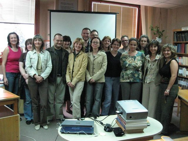 Проект AITMES Тренинг семинар 13 септември 2007 г. На 13 септември 2007 г. от 9.00 ч. в Регионална библиотека "Пенчо Славейков" бе домакин на поредния тренинг семинар, етап от проекта AITMES. В контекста на забавна криминална история, в която участниците от България, Унгария, Германия разгадаваха стъпките на мними престъпници, беше проведено обучение по прилагане на мобилни информационни технологии. Целта на семинара бе да експериментира нови начини за електронно обучение, да изгради базов модел на такъв вид обучение, основано на Интернет технологиите, да направи следваща стъпка в повишаване квалификацията на специалистите. От българска страна в семинара се включиха библиотекари, историци от Регионалния исторически музей - Варна, преподаватели, специалисти от Държавния архив. Разделени на четири групи, участниците търсеха “следи”, оставени от “крадци на ценни предмети”. Следвайки играта, групите се озоваха пред най-интересните обекти от културно-историческото наследство на град Варна – Археологическия музей, Астрономическата обсерватория, Музея на Възраждането, Военноморския музей. Участниците документираха обектите с PDA устройство /джобен компютър/, научиха се да осъществяват чрез него мобилни комуникации, да правят снимки, видеоклипове, да съхраняват видео и графични файлове, да прехвърлят информацията на мобилна уеб платформа. Пета, контролна група колеги работеше в самата библиотека и по конвенционален начин получаваше информация за търсените обекти. В края на деня групите се събраха в библиотеката, разказаха какви “веществени доказателства” са открили и успяха да определят във времето и пространството маршрута на “престъпниците”. Сакът с “откраднатите” вещи се оказа скрит в едно от хранилищата на библиотеката. Участниците попълниха тест за впечатления от придобитите знания. Тепърва предстои анализ на резултатите от семинара, който ще ни даде отговор дали игровия или конвенционалния начин на обучение е по-подходящ за образователни цели при деца и при възрастни хора, с цел да се създаде действащ базов модел на обучение.